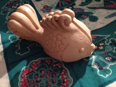 In genere non mi piacciono queste cose ma ora che il pesce è sullo scaffale della nostra camera ci sta proprio bene.
