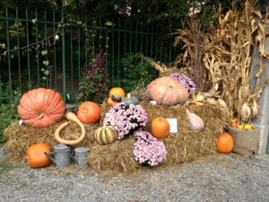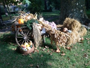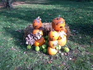 Splendidi gli allestimenti di zucche e spaventapasseri immersi nella natura.