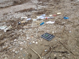 Passeggiando tra i sassi lungo la spiaggia, ho trovato dei libri rotti e bagnati.