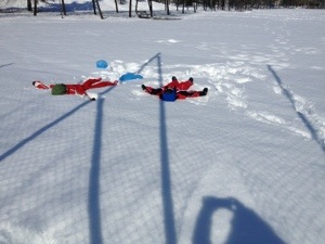 Hanno anche incontrato due amiche con cui hanno costruito un pupazzo e fatto qualche scivolata con il loro bob ( loro avevano i sacchetti della spazzatura!)