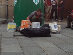 Più tardi, abbiamo assistito ad una performance musicale molto originale: un tipo suonava delle percussioni create con vari oggetti.