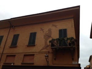 Poi abbiamo ammirato la sagoma del grande Lucio, piazzata nel muro esterno della sua abitazione.