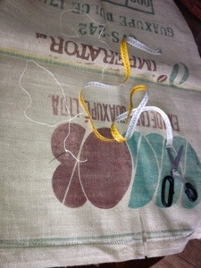 Zucco mi ha aiutata con le misure e mi ha consigliato il filo da arrosto per cucire la juta.