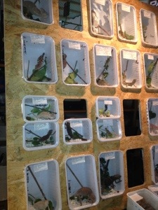 Tra le file si possono osservare teche contenenti schifezze di ogni specie: dai serpenti alle vipere, dai ratti ai gerbilli, dalle esche di insetti vivi alle larve, dai pesci rossi ai camaleonti.