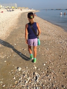 Zucchetta ha gradito il paesaggio mattutino della spiaggia vuota, la bassa marea, il mare liscio.