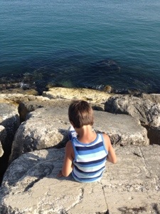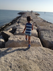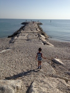 Arrivati al chilometro numero due era tutto rosso e il sole bruciava, così gli ho proposto di fermarci al molo.