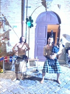 Poi siamo tornati per le viuzze dove un duo di “scozzesi romagnoli allegri” suonavano cornamusa e tamburo con una grinta travolgente.