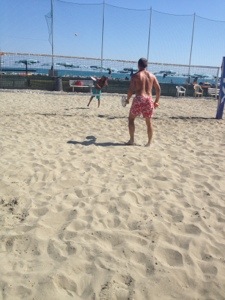 Raggiunta la spiaggia abbiamo provato a giocare a beach tennis nelle varie combinazioni.