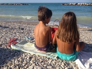Noi quattro, seduti sui sassi in riva al mare a prendere gli spruzzi delle onde.