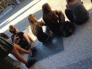 Una, su sei ragazzine, se ne stava seduta per terra, sul marciapiede, ostruendo la fermata dell’autobus.