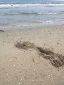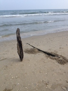 Zucchetto ha trovato un gabbiano morto. L’ha sotterrato con la sabbia e gli ha messo un bastone come segno di importanza.