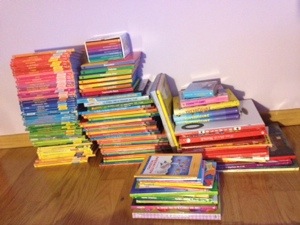L’altro giorno ha deciso di rivoluzionare la sua piccola biblioteca, togliendo tutti i libri da “bimbi piccoli” che sposteremo in garage.