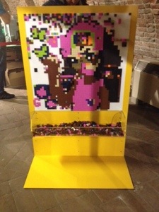 Poi, in fondo all’esposizione (gratuita) un bel tavolone pieno zeppo di costruzioni da comprare.