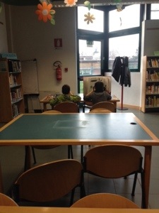 In biblioteca, c’era la signora gentile che mi ha prestato una presa cui collegare il pc per lavorare.