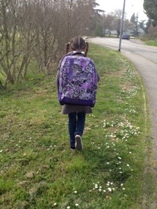 All’uscita di scuola ha fatto un pezzetto di strada da sola, in via sperimentale (con noi dietro!)