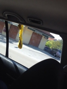 Prima di salire in macchina, tutti e due si sono bagnati scarpa e calzino…steso poi al vento dentro al finestrino.