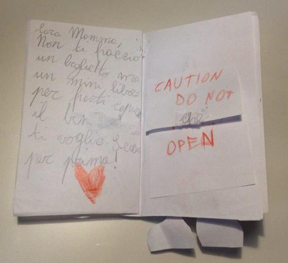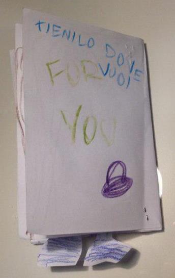 Si esprime con la scrittura, con i disegni e con tutto ciò che trova.