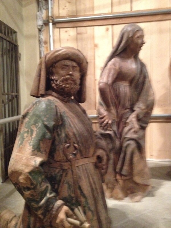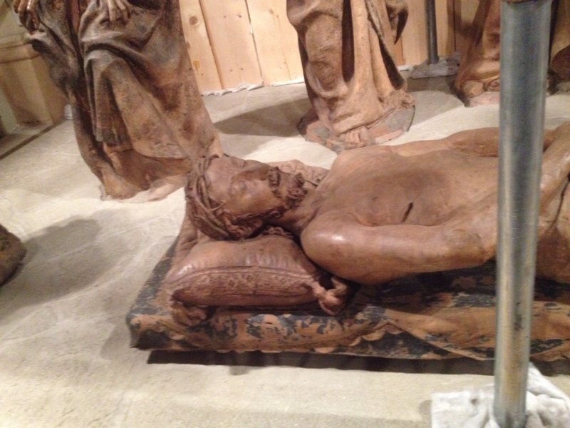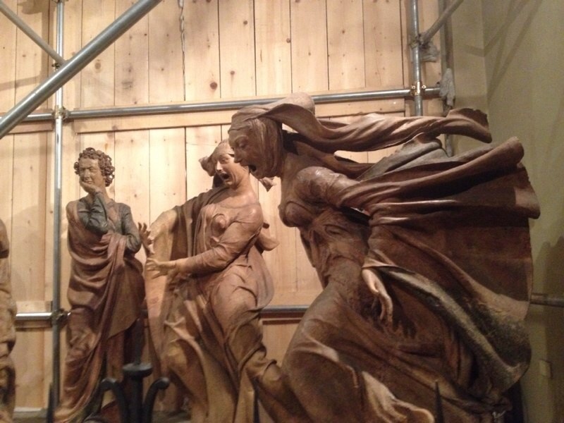 Siamo state nel Santuario di Santa Maria della Vita dove c’era “il Compianto sul Cristo morto”: un’opera composta da sette sculture a grandezza naturale che rappresentano la drammaticità della scena alla vista del Cristo morto, disteso in mezzo a loro. Le vesti gonfiate dal vento mi hanno incuriosita poiché spiccavano solo sui seni delle due donne.