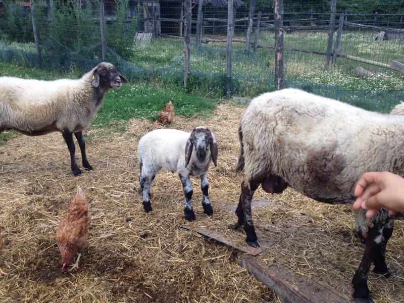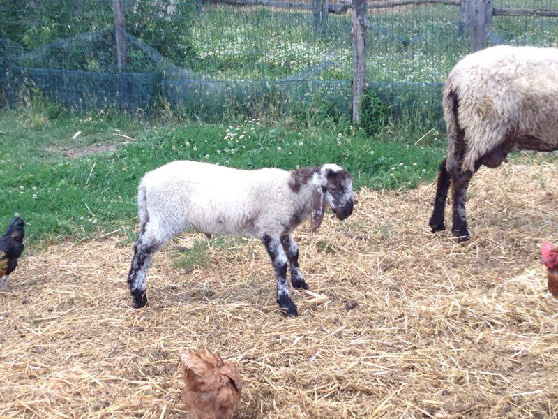 Il tempo era incerto e le pecore belavano in un suono inquietante. I porci sonnecchiavano, le galline gironzolavano ovunque e le caprette saltavano, mentre l’asino mangiava erba dalle mani . La pecora piccola prendeva il latte dalla mamma.