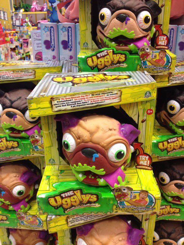 Oggi entrando di sfuggita in un negozio di giocattoli, la mia attenzione è stata catturata da “The Ugglys”.Una specie di cane di gomma manovrabile tipo marionetta che fa versi di ogni tipo.