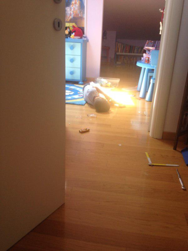intendevo dire che ha cantato, disegnato uno scudo, combattuto, coccolato, mangiato, costruito un robot (e in questo lo sento vicino a me visto il mio lavoro)… non si può certo dire che non sia attivo… e di conseguenza con il cervello che lavora sempre bisogna anche riposare un pochino… e chissà che anche nella fase di riposo il suo cervello non abbia prodotto qualcosa..