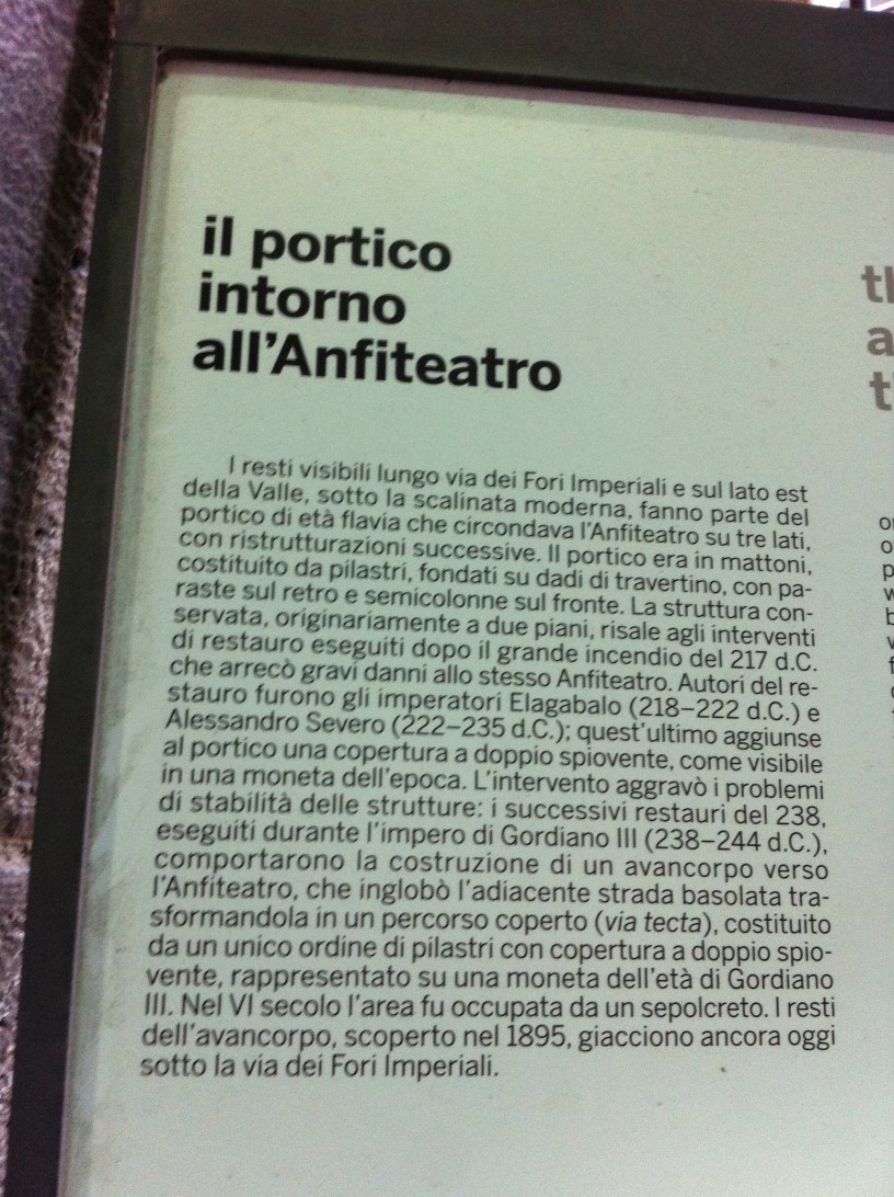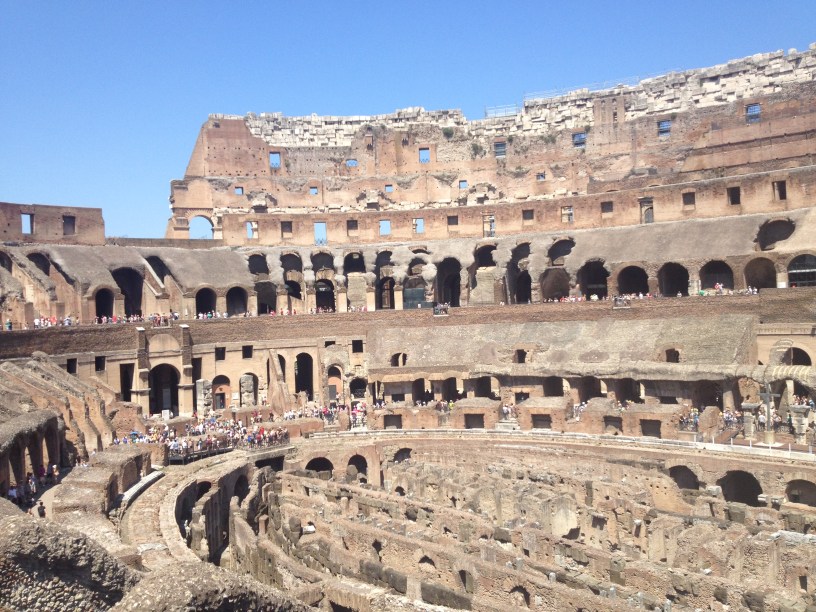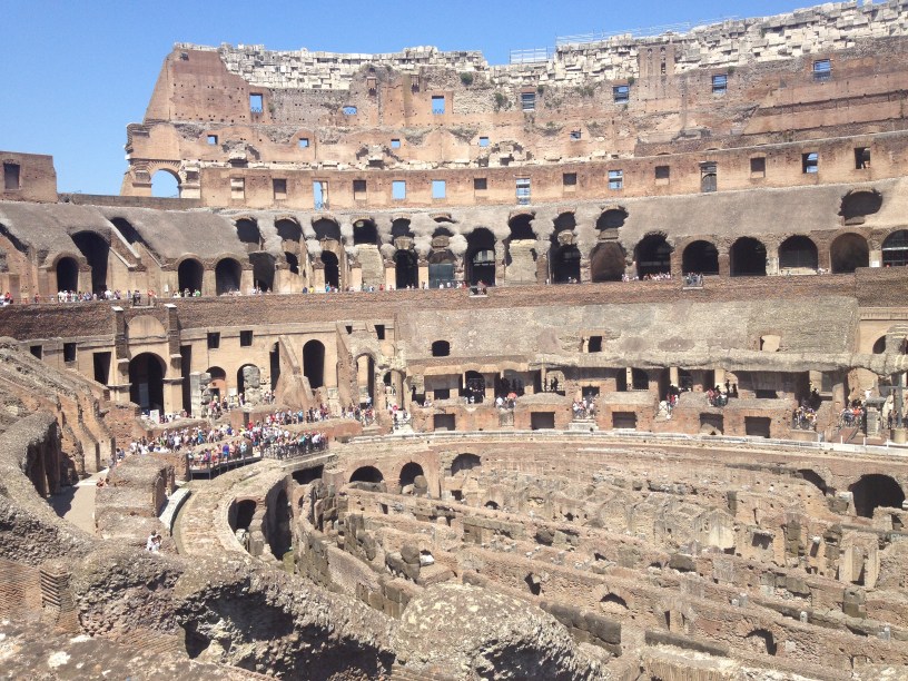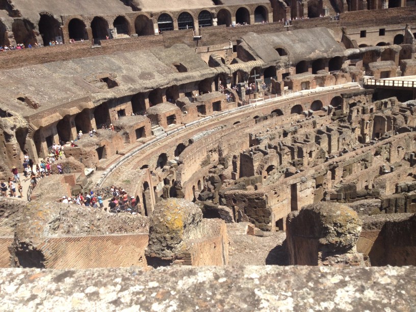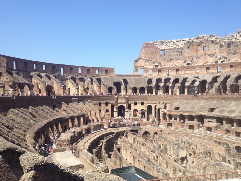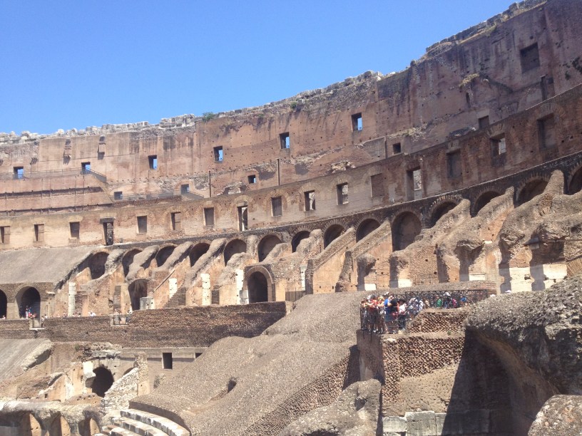 Ma ciò che più mi ha stupita era la percorribilità del Colosseo e la possibilità di toccarli quei muri così antichi e preziosi. Tutti quei turisti stravaccati oltre le corde, li avrei fatti alzare con degli insulti, irrispettosi di una simile bellezza.
