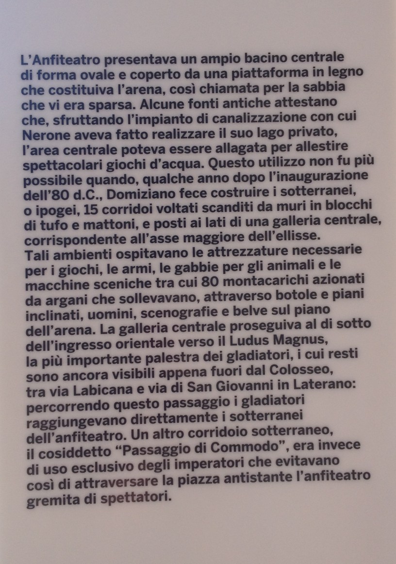 Inizialmente non esistevano sotterranei ma vi era un enorme bacino d’acqua per ospitare le neomachie, vere e proprie battaglie navali.