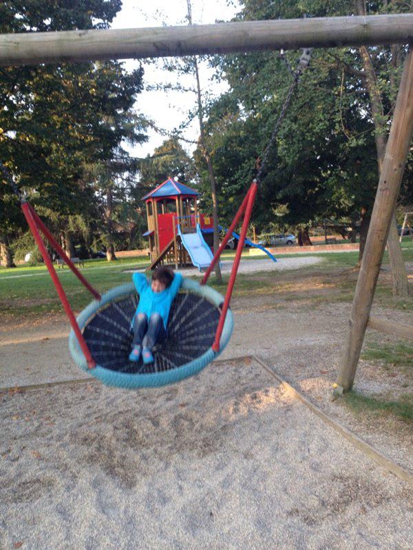 Vi sono varie giostre, silenzio, prato, ghiaia e aria fresca.