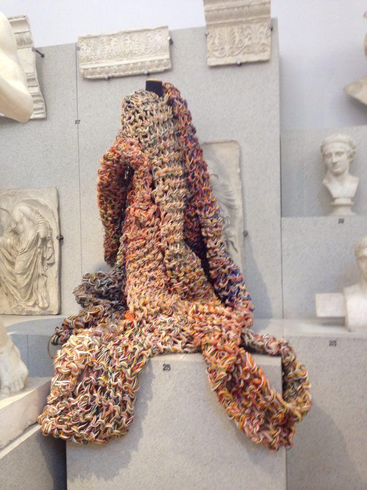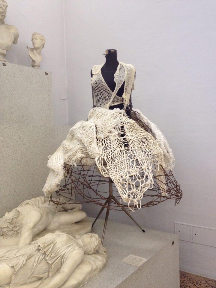 Come spesso accade con l’arte moderna, resto perplessa, anche se mi ha fatto effetto il tailleurino di stracci….