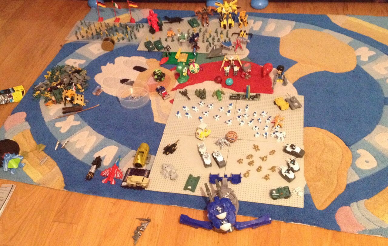 Così stasera ho giocato con lui ai soldatini e abbiamo allestito un campo incredibile.