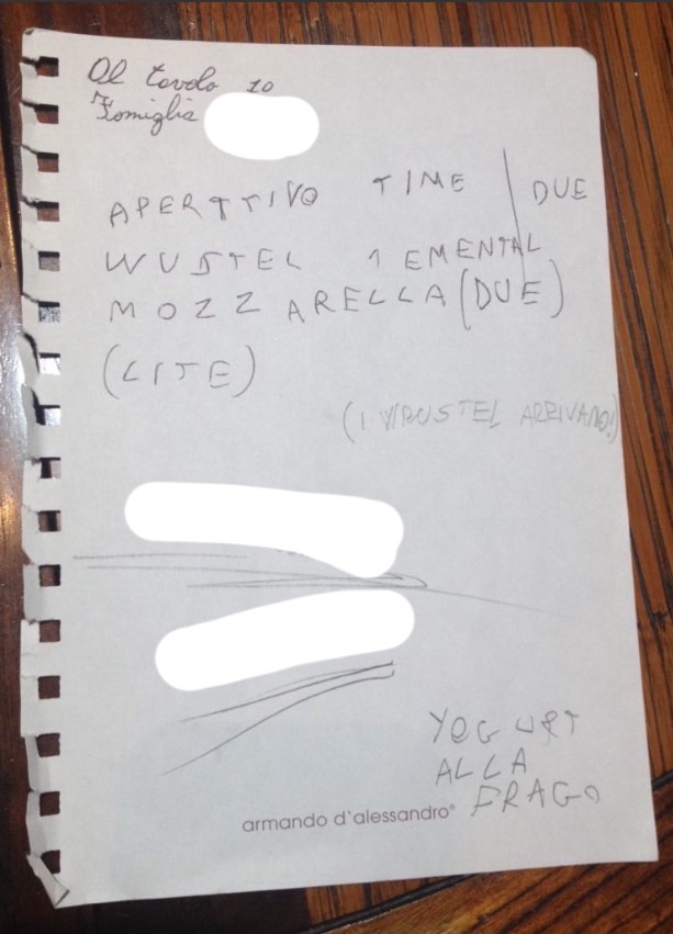 Ha preso un blocco ed ha iniziato a fare le ordinazioni chiedendo se gradivamo un aperitivo.
