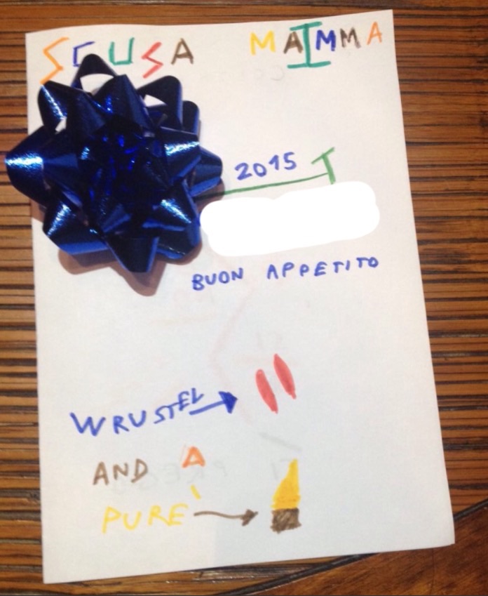 Stasera quando sono scesa per apparecchiare, c’era la tavola già pronta e non mancava proprio niente. Sulla porta della cucina c’era attaccato il cartello “VIETATO ENTRARE”.