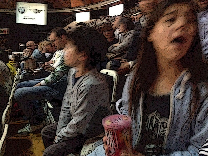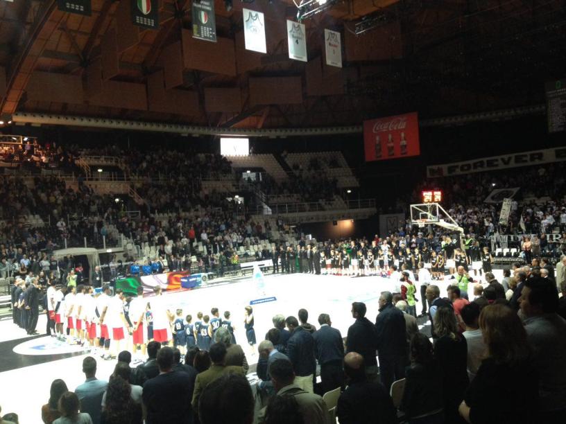 Ieri pomeriggio siamo stati al palazzo dello sport a vedere una partita di basket. Tutti e quattro.