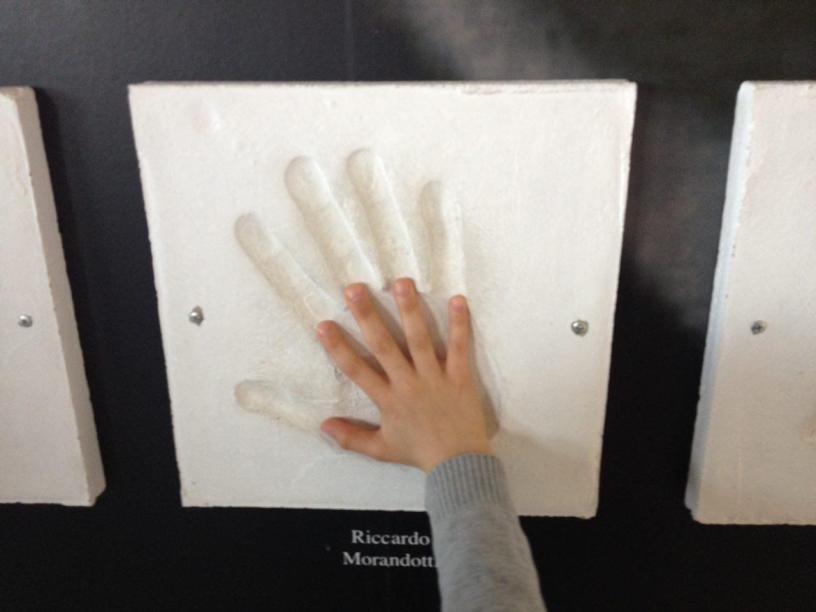 Durante l’intervallo abbiamo fatto un giro e incontrato facce note, mentre Zucchetto metteva la sua mano dentro al calco attaccato al muro.