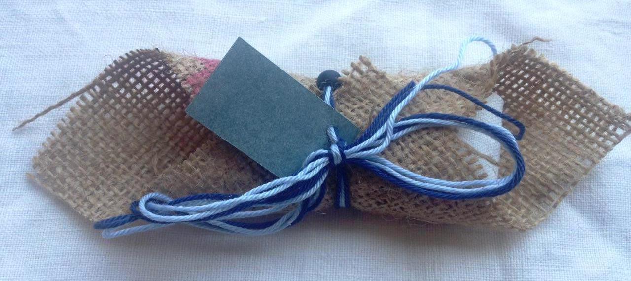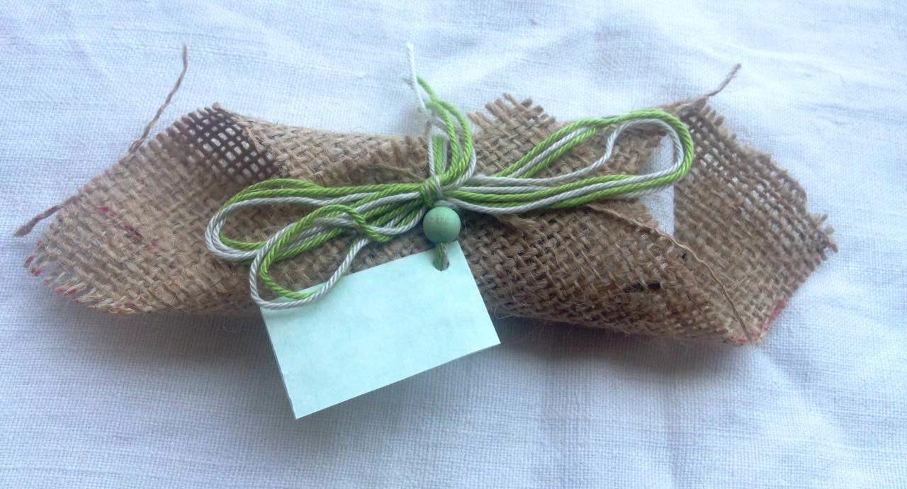 Avvolgere la bustina di lino nel quadrato di juta.