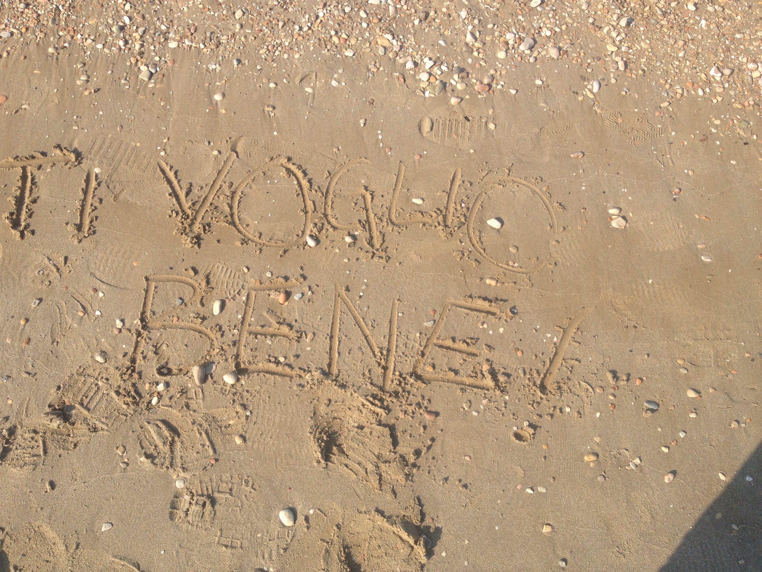 Sulla via del ritorno mi ha scritto Zucchetta e le ho risposto con un messaggio sulla sabbia.