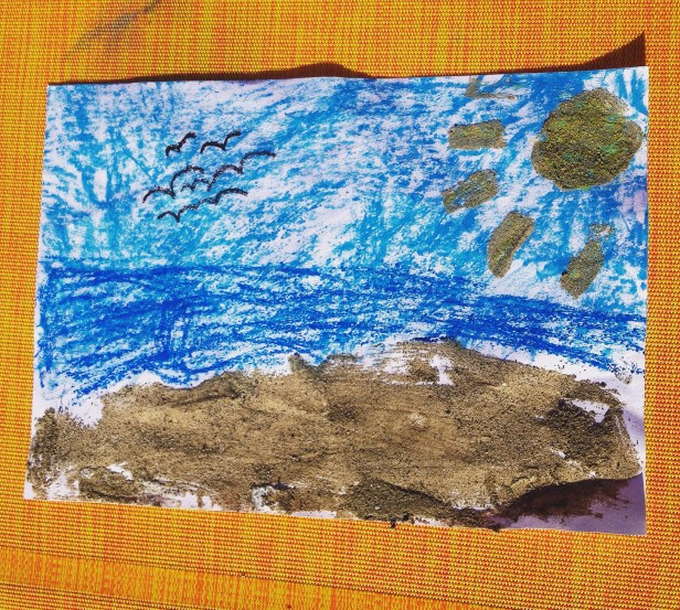 Con loro, ho notato subito due ragazze che giocavano con colori e sabbia. Così mi sono fermata e dopo aver visto le loro t-shirt uguali, le ho chiesto chi fossero. Mi hanno spiegato che forniscono un servizio di animazione domenicale alla spiaggia. Dopodiché hanno chiesto a Zucchetto se anche lui voleva unirsi al gruppo e così io e Zucco siamo andati all’ombrellone da soli.