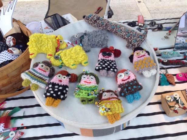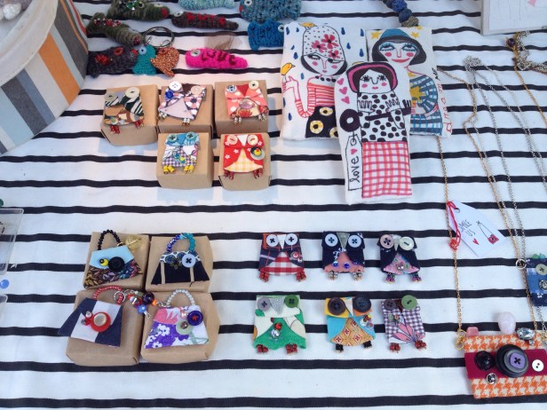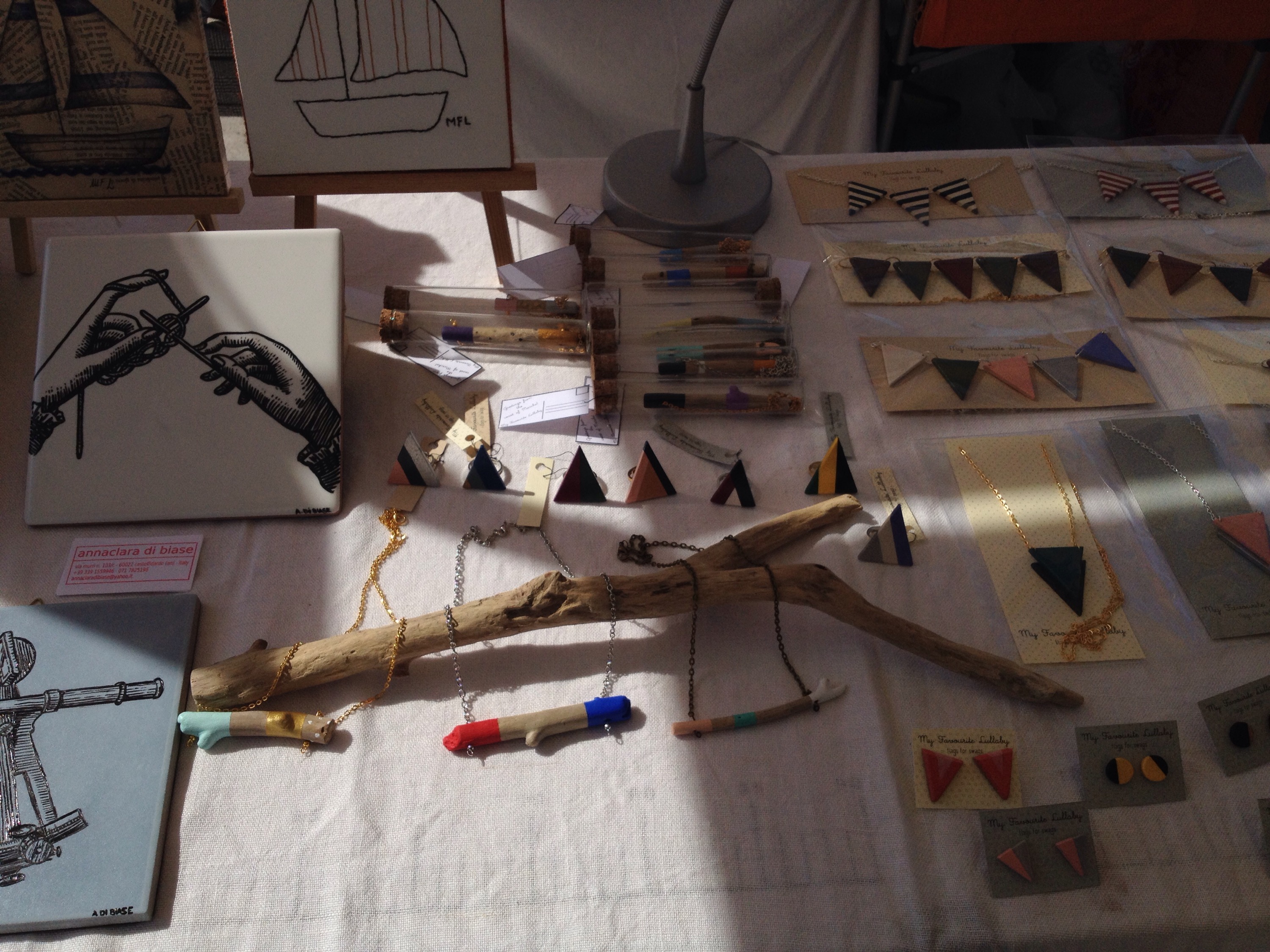 Esponevano pesci su sagome di legno con patchworch di stoffe variopinte, spille, pendagli, flipper, borse fatte con i giornali e tante altre piccole meraviglie fatte a mano.