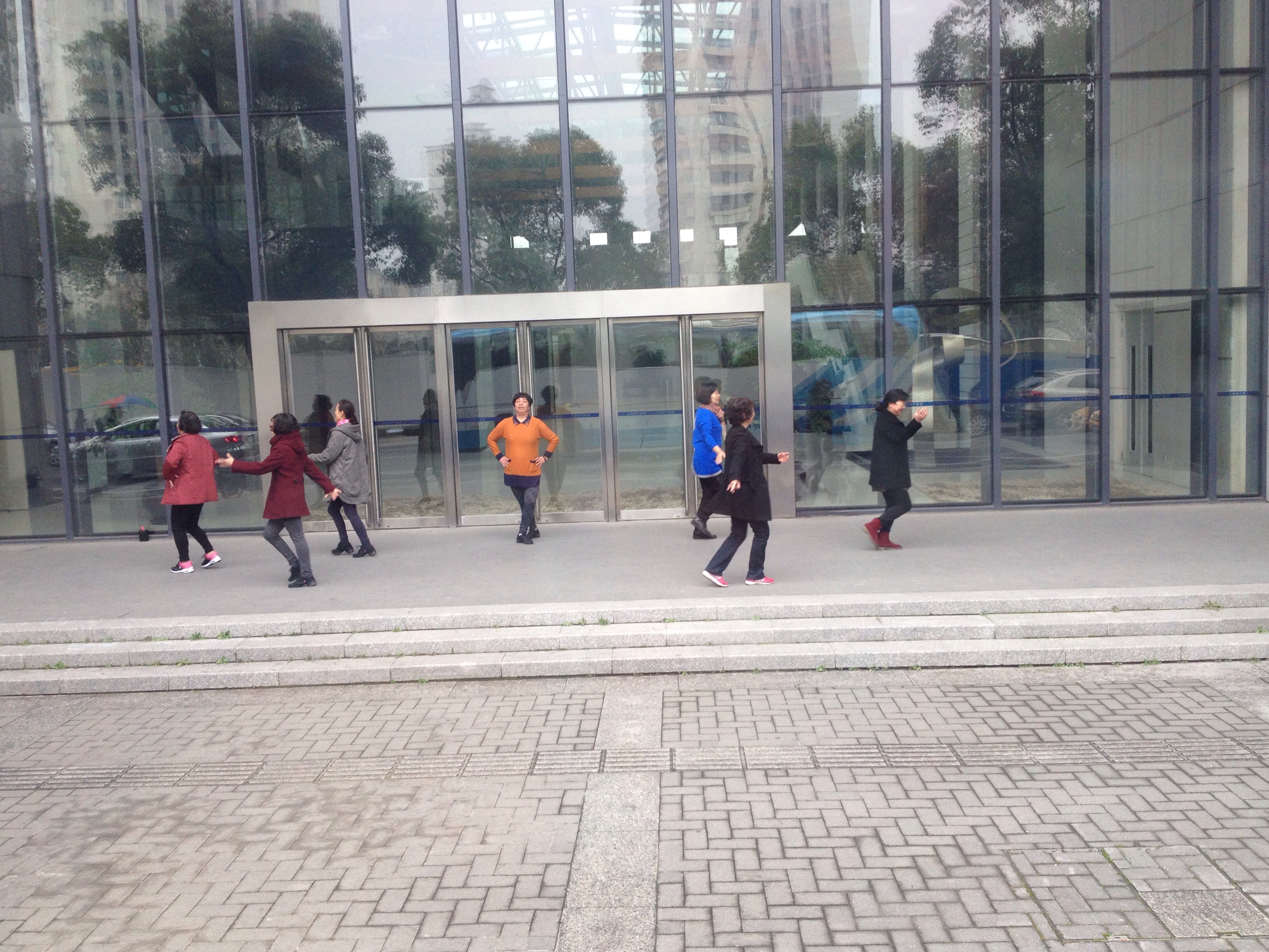 Mi ha colpito la permanenza dei bimbi cinesi nelle scuole che arriva anche alle 21 o addirittura al pernottamento per chi abita lontano. Pare che il gioco sia qualcosa di raro e questo certamente non li stimola nella creatività che per me è qualcosa di “vitale”…Durante il tragitto ho visto dal pullman un gruppo di signore che faceva ginnastica!