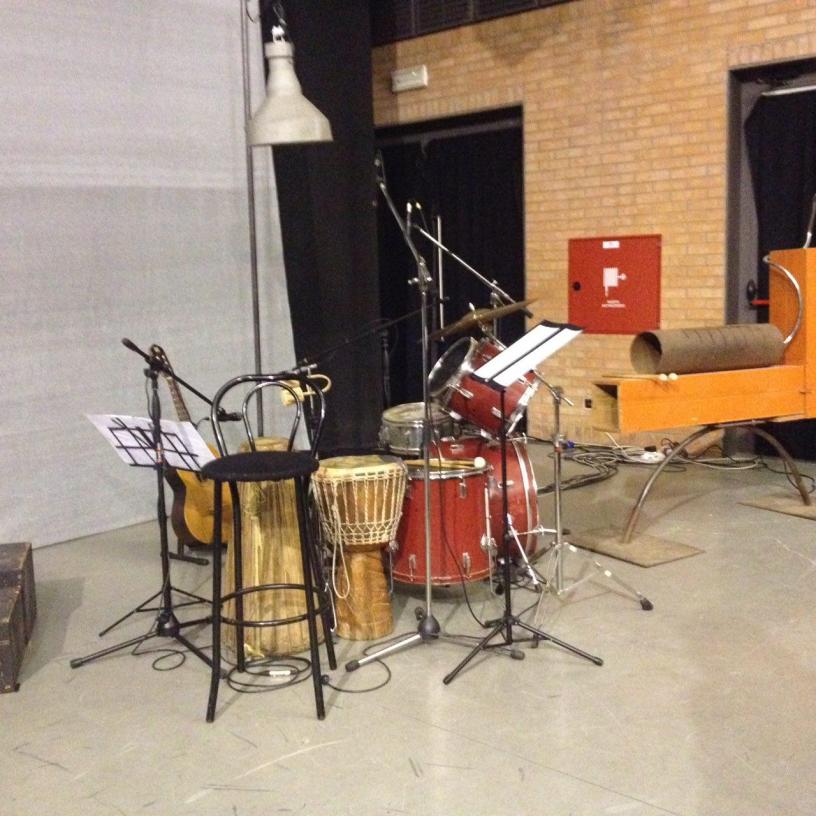 Alle 21 eravamo seduti tutti e quattro in un piccolo ma delizioso teatro nel cuore di un paesino di Reggio Emilia. Sul palcoscenico qualche sedia e vari strumenti musicali, alcuni dei quali difficili da identificare: tubi, rulli e percussioni.