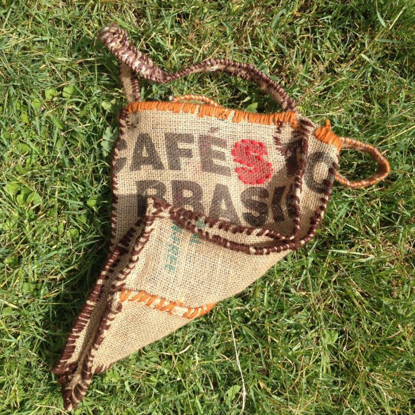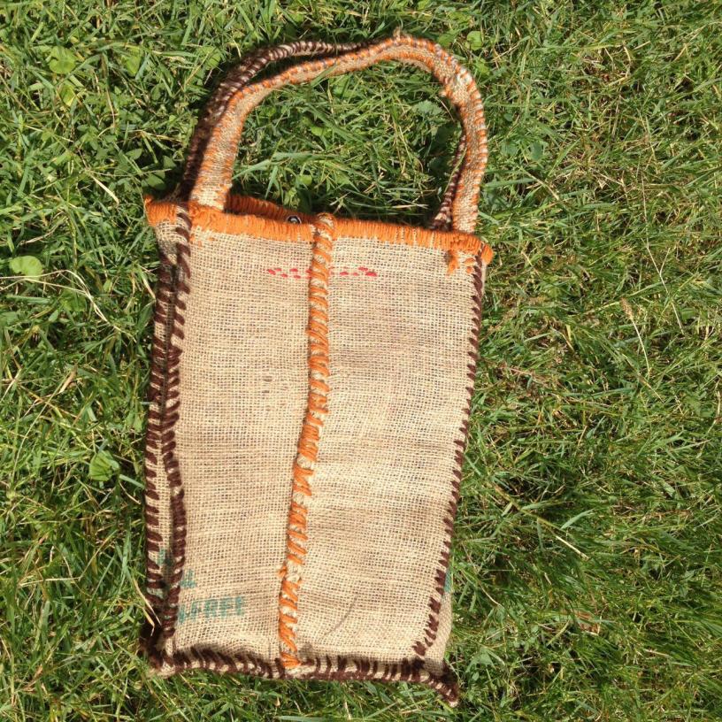 Ho provato a realizzare un modello in juta tridimensionale, cucendo dei punti lateralmente. Le bretelle sono in juta per una maggior resistenza.