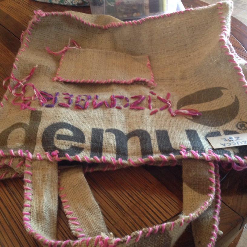 E’ la prima borsa in juta che ho fatto così grande e lei mi farà da tester!