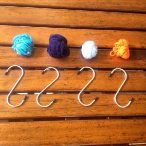 Poi avevo comprato dei grandi ganci in metallo che mia madre ha ricoperto col filo di lana su idea di mio marito.
