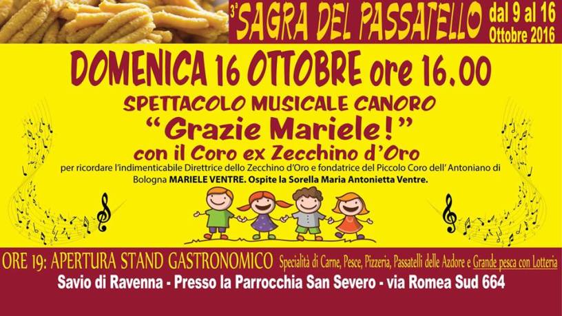 Nel mese di giugno si è svolta una manifestazione di festeggiamento, durata tre giorni, nella quale alcuni ex coristi del Piccolo Coro dell’Antoniano insieme ad altre iniziative della Fondazione Mariele Ventre hanno preso parte. Questa giornata ha fatto si che l’invito fosse rinnovato nel mese di ottobre, questa volta a Lido di Savio.