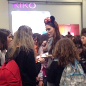 Mia figlia vedendola ha sussultato e io ho provato una gran tenerezza e forte empatia. Lei, notando il sussulto le ha detto: “Non sono io!”. Dopodiché mia figlia è rimasta insieme a lei e alle altre tre o quattro ragazzine mentre la Sabrigamer telefonava. Nel frattempo io cercavo di fotografarle insieme ma mia figlia, orgogliosa, non voleva, così sono andata a fare un giro. Entrata al Centronova ho trovato una folla di ragazzini dai 12 ai 15 che la stavano aspettando in un’atmosfera elettrica. Io guardavo e cercavo di capire che cosa sarebbe successo, curiosa. Dopo poco sono tornata verso l’ingresso e a quel punto la Sabrigamer ha fatto il suo ingresso, seguita da un boato.