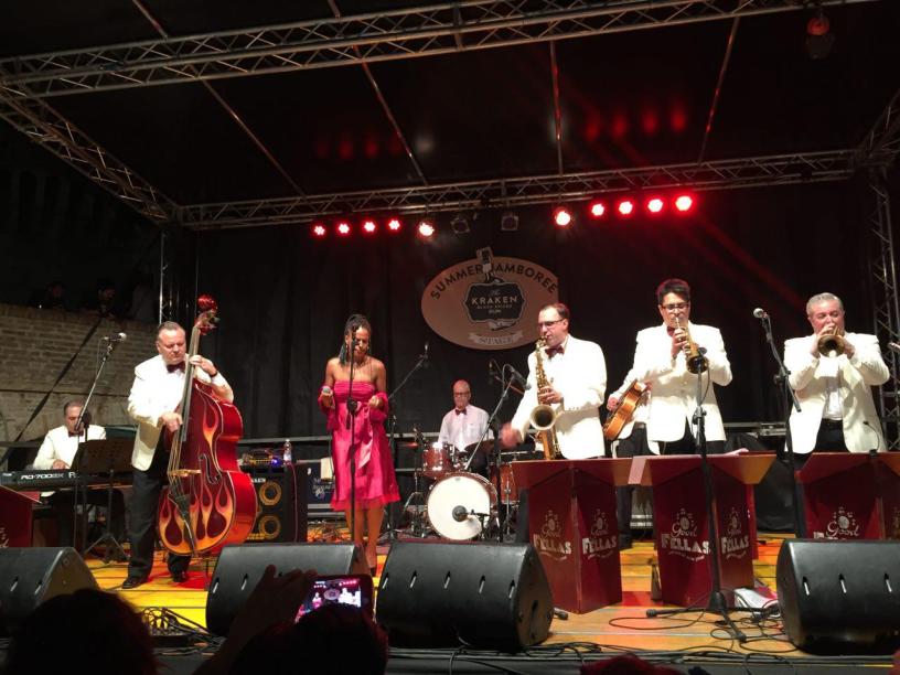 Una band di otto elementi in giacca bianca e frac nero, ci ha tenuti incollati fino all’ultima nota, i “The Good Fellas, Italy“, nati nel 1993.