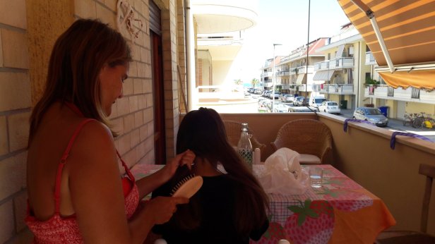 É successo in terza elementare che non mi volevi più. Non potevo sfiorarti, non potevo aiutarti, non potevo coccolarti, poi, pian piano me ne sono fatta una ragione. Mi dicevo che era un bene perché volevi staccate il cordone, mi ripetevo che tutta quel’aggressivitá era frutto della fatica che facevi a staccarti da me, mi convincevo che era il tuo modo per affermare la tua personalità. All’inizio mi sono ribellata poi ho cercato di capire e pian piano di plasmarmi insieme a te. Se l’avessi visto in una sfera non ci avrei creduto. Io? A me? Ma com’é possibile? E questa tua distanza é diventata una forma di rispetto che avevo nei tuoi confronti perché certe cose non possono essere forzate. Milioni di volte ho invidiato le altre mamme, soprattutto al coro che accudivano le loro bambine con piccole attenzioni. Al momento della pettinatura tu volevi fare da sola ma io continuavo ad ammirare la tua indipendenza e mi consolavo pensando che la tua semplice coda di cavallo rispecchiava a meraviglia la mia concezione di esibizione…ma ieri in terrazza mi hai chiesto: “Mamma mi pettini i capelli?” e io ho sentito il mare dentro ma se te l’avessi fatto capire anche solo con un sorriso, allora avresti cambiato idea…oggi, ancora: “Mamma, mi togli i nodi?” e insieme al mare ho sentito anche il sole.