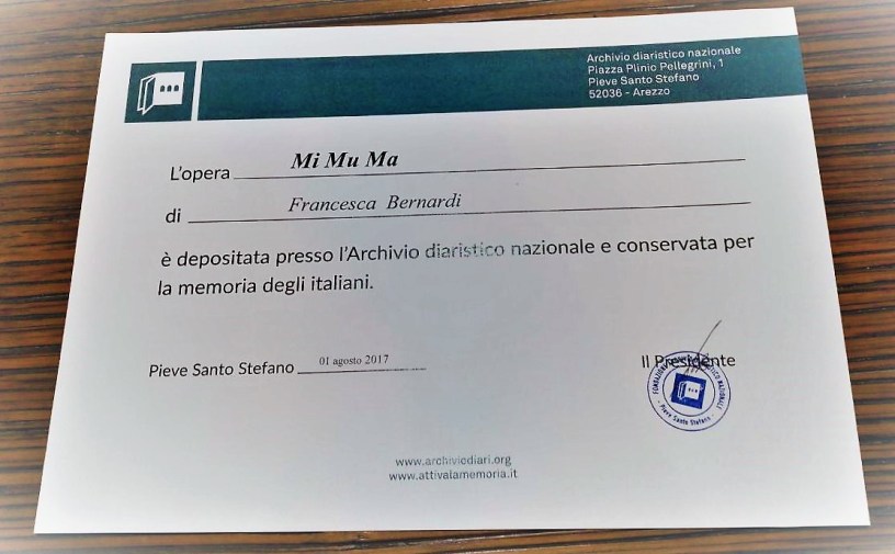 Sono contenta di averlo depositato all’Archivio dei Diari perchè così la mia storia potrà essere vissuta da altri rimanendo viva.