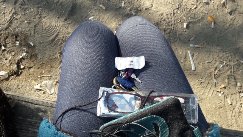 Ho trovato una panchina al sole e ne ho approfittato per svuotare la borsa. Le chiavi di casa, un bigliettino da visita rosso, gli occhiali a fiori, le cuffiette, monete, una conchiglia, il portamonete, un portafoglino di stoffa e un pezzo di carta. Un biglietto del parcheggio ripiegato in una barchetta storta. Un ritaglio di carta che ho tenuto tra le mani durante un attesa. Un rettangolo che piegavo con finta calma producendo delle linee. Ogni linea una specie di calmante seppur minimo. Quindi quel biglietto ora non é più un pezzo di carta ma parte di qualcosa.