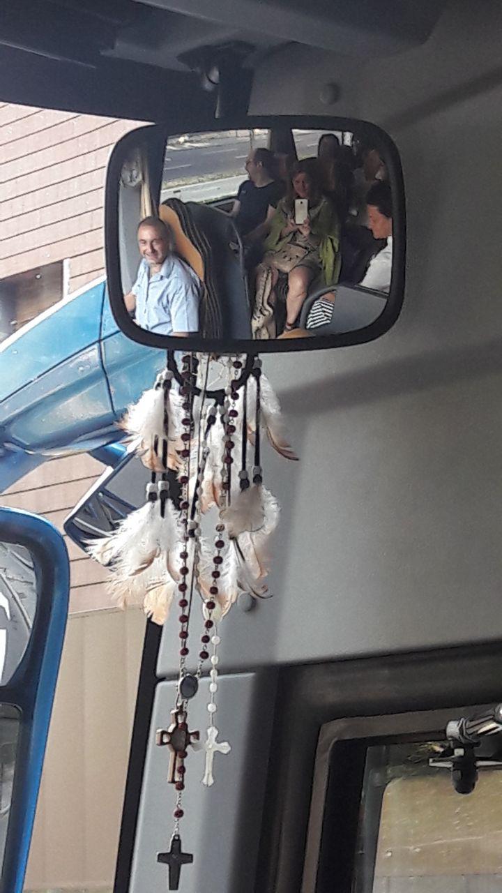 “Cos’è questa puzza di fumo?” sentenzia Luciana, la direttrice del coro, che non si accorge che l’autista ha appena spento la sua sigaretta…Dopodiché, recita le preghiere, poi inizia un bel discorso d’incoraggiamento. Parte dalle “antichità” che sono le coriste più vecchie per poi passare a quella più giovane che ha fatto grandi miglioramenti, considerando che non conosceva praticamente nessuno, infatti le varie appartenenze al Piccolo coro risalgono dagli anni ’60 agli anni ’90.